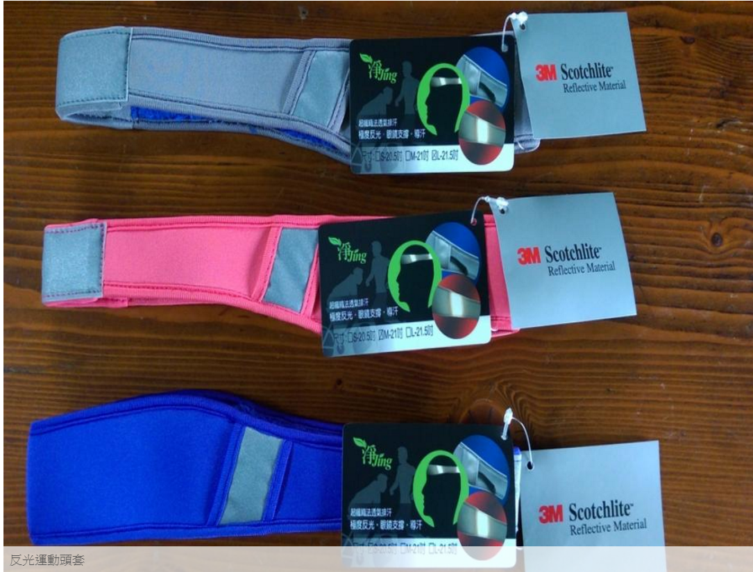 特性: 可導汗,運動時會將汗導流至旁邊,眼睛不會受汗影嚮而不舒服,雙旁,後面有3M反光帶,在天色昏暗時,